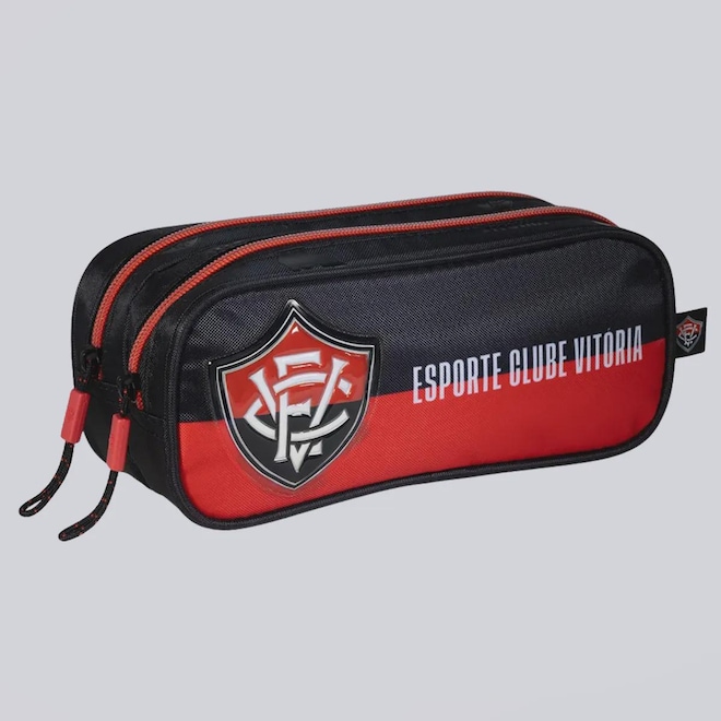 Dimensões aproximadas (A x L x P): 9 x 7 x 21,5 cmCompartimentos: Dois principais amploComposição: 100% PoliésterAbertura/fechamento: ZíperCor predominante: PretoPeso aproximado: 120 gIndicado para: CasualIdade: JuvenilEscudo: AplicadoClube: VitóriaOrigem: ImportadaGênero: UnissexTamanho único