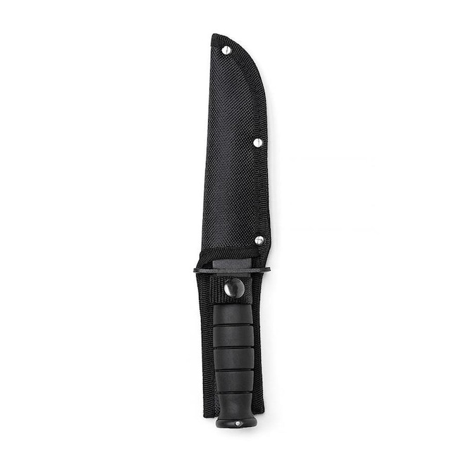 A Faca BR FORCE Barracuda possui lâmina em aço 3cr13 em acabamento preto, cabo emborrachado e bainha em Nylon.