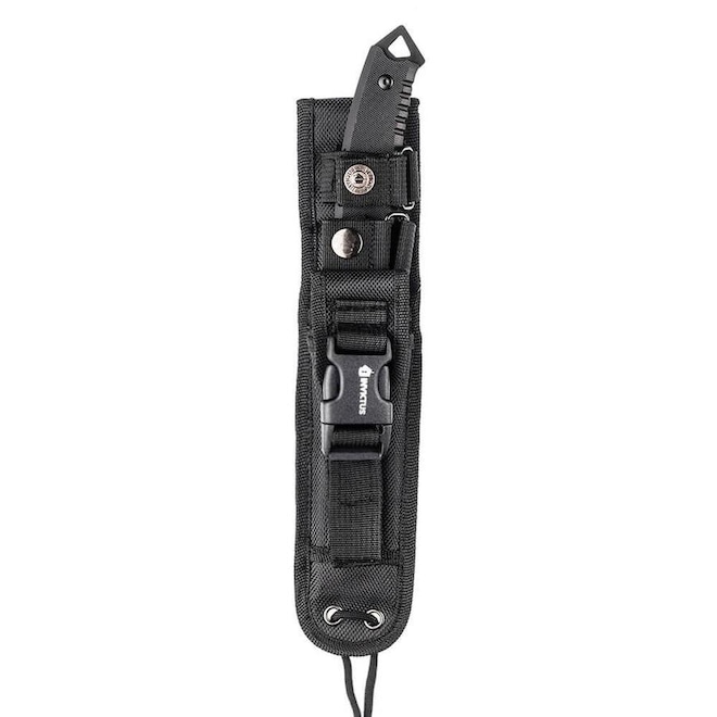 Possui como diferenciais, além da lâmina em aço inoxidável 420 Full Tang, de maior resistência a impactos e maior durabilidade, pomo metálico (quebra vidro), orifício para fiel e bainha em nylon balístico 1680 D com sistema MOLLE e bolso externo.