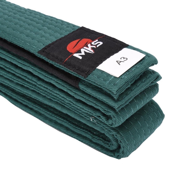 As faixas de Jiu Jitsu Elite MKS atendem os padrões internacionais de qualidade e são compostas de 52% poliéster e 48% algodão, com 8 fileiras de costura, 2 camadas de lã 450grm forradas. Mercerizado (tratamento para fios e tecidos de algodão que resulta em fios ou tecidos com uma aparência lustrosa e os fortalece). Com etiquetas bordadas em alta definição com logo MKS