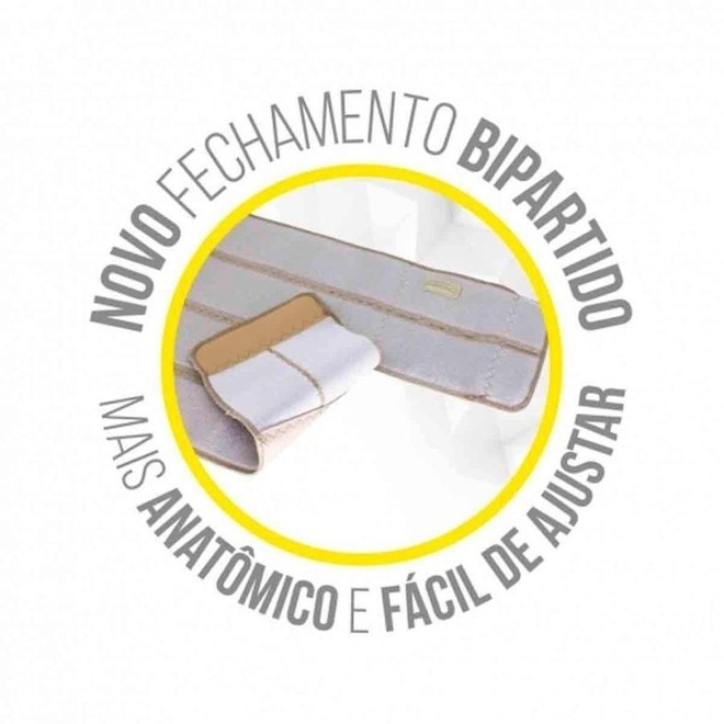 O fecho aderente permite o ajuste da compressão conforme a necessidade, garantindo o conforto durante o uso.