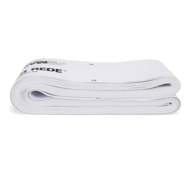 - Detalhamento: Faixa branca para rede de tênis superior, com ilhós nas duas laterais de 15 em 15 centímetros, tratamento UV que evita a degradação do polímeros ocasionada por intempéres, matéria prima virgem de alta densidade, feita em laboratório para aumentar o tempo de uso, acompanha corda para fixação