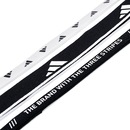 - Detalhamento: Bandana unissex, na cor preta e branca, uma faixa preta com logos Adidas ao longo do comprimento e laterais branca, outra faixa branca com o logo Adidas, e a terceira faixa com a escrita "A marca com as 3 listras" nos idiomas: Inglês, italiano e alemão;