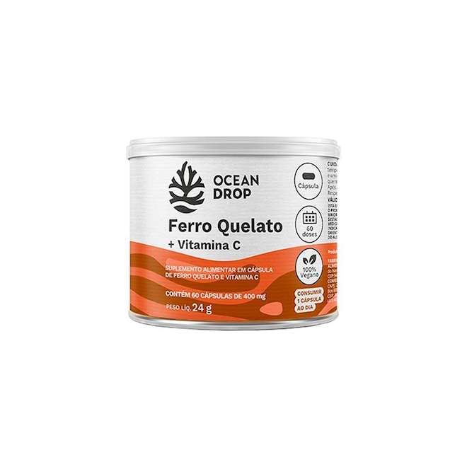 Ferro Quelato + Vitamina C - 60 Cápsulas 400mg - Ocean Drop - Foto 1
