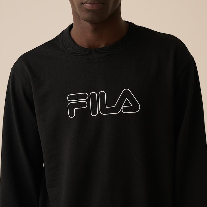 Casaco masculino produzido em moletinho leve, com modelagem regular e barra e punhos em ribana, garantindo um ajuste perfeito e confortável. O detalhe do ombro rebatido para as costas confere um acabamento moderno e refinado. A estampa em silk FILA Linear Outline na frente adiciona um toque de estilo autêntico.