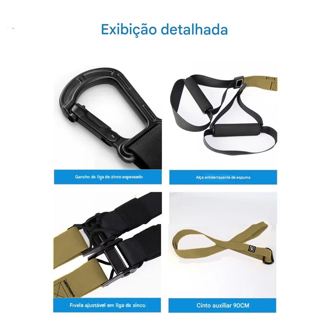 Itens Inclusos: 1FitaTrx Gold Sports Power, 1 bolsa para transporte e1 mosquetão de aço que suporta 200 kgs.