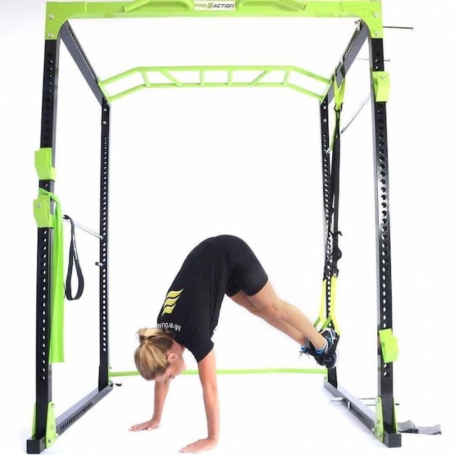 Adquira força, resistência, flexibilidade, equilíbrio e coordenação com a fita de suspensão de ajuste de altura e protetor de porta.