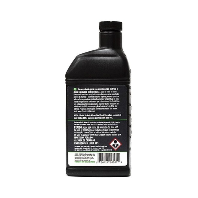 Formulado especialmente para freios à disco, o Fluido de Freio Mineral Finish Line 475 ml combina os melhores atributos de performance que seu sistema de freios precisa. O fluido com base em óleo mineral é menos tóxico e corrosivo, o que ajuda a conservar seus freios e seus respectivos componentes internos. Este fluido é bastante uItilizado para favorecer o bom funcionamento dos freios da sua bicicleta, garantindo, assim, a sua segurança.