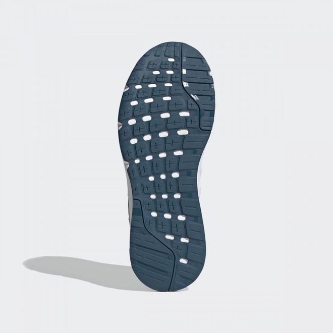 O tênis possui uma mistura de material arejado no cabedal e um suporte no meio do pé, para suporte extra.