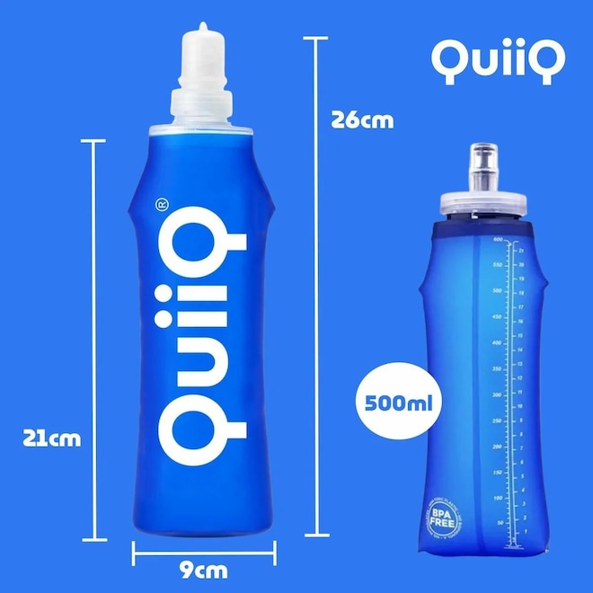 - A Garrafa Dobrável Flexível de Silicone QuiiQ Sports 500ml é a escolha perfeita pra quem busca leveza, praticidade e desempenho.