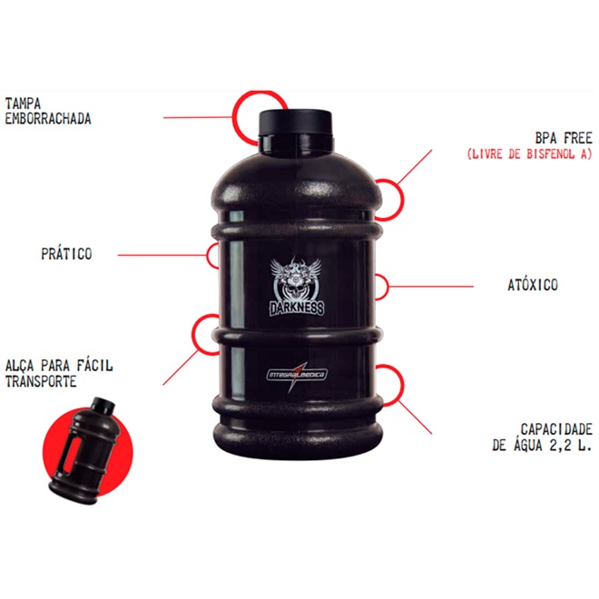Conheça a Garrafa de Água Integralmédica Galão Darkness - 2,2L!