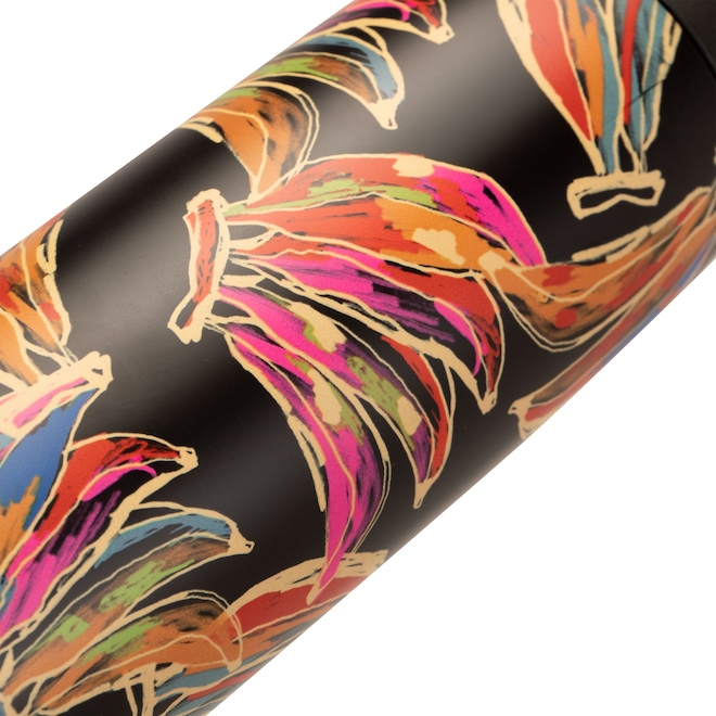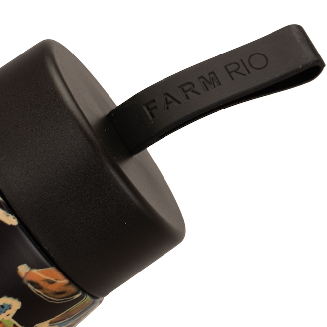 om uma capacidade de 750ml, essa garrafa combina praticidade e uma estampa divertida de bananas, inspirada na arte tropical da Farm.