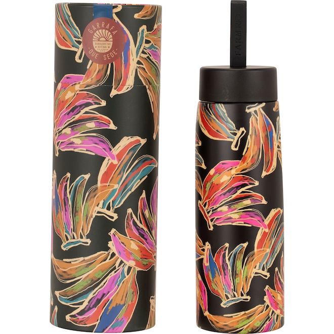 Mantenha-se hidratado com estilo usando a Garrafa Farm Rio Que Sede Artsy Banana. C