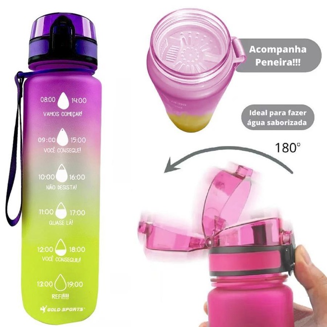 Com capacidade de 1 litro, essa garrafa possui cores degradê que garantem um design moderno e atraente.