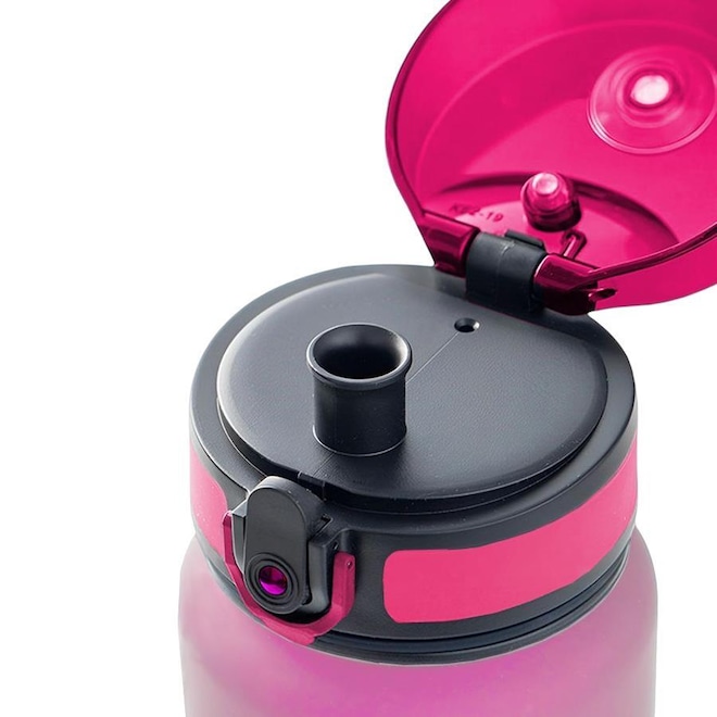 Além disso, sua tampa é fácil de abrir com apenas um clique, e possui uma borracha que impede vazamentos, mesmo se você deixar a garrafa na posição horizontal.