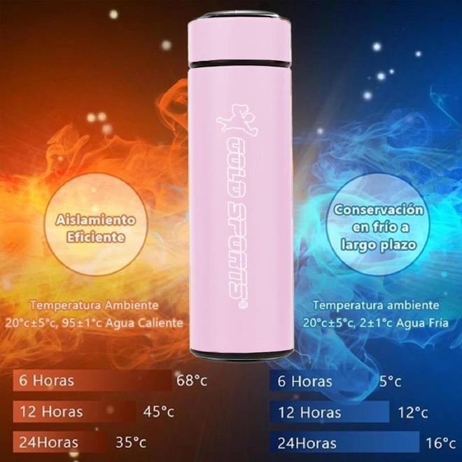 - Sobre o produto - Garrafa Térmica Gold Sports SmartII com Termômetro Digital Infusor de Chá- A Garrafa Térmica Aço Inoxidável 304 Gold Sports SmartII- Com Termômetro Digital de Led Infusor de Chá - Essa garrafa térmica reúne tecnologia, elegância e já é um grande sucesso. - - Totalmente a prova d''''água. - - Possui termómetro e painel touch de Led integrados na tampa que mostram a temperatura do líquido conservado. - - Seu painel é touch bastando tocar nele para mostrar a temperatura interna. - - Para uma medição ainda mais precisa vire a garrafa para baixo e volte para a posição normal antes de tocar no touch. - - A unidade de temperatura Celcius (C°) do painel muda de cor de acordo com a temperatura do líquido. - Quando frio a unidade ficará , quando esta morno a unidade ficará amarela e quando quente a unidade fica vermelha. - - Possui anel de vedação de silicone que impede vazamentos até quando deitadas ou viradas para baixo. - - Vem com infusor no gargalo caso você queira fazer chá. - Ele também ajuda a filtrar líquidos com partículas imersas. - - São fabricadas em plástico livre de Bisfenol e aço inoxidável 304 da família dos Austeníticos, com grande quantidade de ligas ferro, cromo e níquel que conferem alta resistência e proteção contra corrosão. - - Suas camadas internas garantem longa conservação da temperatura e das propriedades da sua bebida. - - Não transfere a temperatura do líquido para a camada externa da garrafa e não transpira, evitando queimar ou molhar as mãos e as superfícies de contato. - Teste de Conservação da Temperatura: - Realizado com água. - - Temperatura ambiente de 23°. - Líquido quente adicionado a 95°: - Após 6h = 65° - Após 12h = 50° - Após 24h = 35º Líquido frio adicionado a 3°: - Após 6h = 5° - Após 12h = 10° - Após 24h = 15º Bateria (CR2032): - O visor de Led utiliza tecnologia de conservação de bateria que mostra a temperatura por apenas 3 segundos. - - A bateria fica localizada na parte traseira do painel de Led. - Substituição da Bateria: - Retire a tampa da garrafa. - - Aplique pressão moderada sobre o painel de Led no sentido de fora para dentro até que o conjunto eletrônico saia da carcaça externa. - - Remova e lente superior com cuidado para ter acesso ao painel de Led. - - Remova o painel de Led no alojamento para ter acesso a bateria. - - Substitua a bateria e coloque o painel exatamente na mesma posição. - - Caso o painel de Led seja instalado na posição invertida a temperatura ficará encoberta pela lente superior dificultando sua visualização. - - Agora basta recolocar a lente superior e inserir o conjunto eletrônico de volta na carcaça externa. - Dicas Importantes: - Essa garrafa não pode ser levada ao forno microondas. - - Não levar em lavadora de louças. - FÁCIL DE TROCAR A BATERIA COMPOSIÇÃO AÇO INOXIDÁVEL E PVC (BPA FREE) CONTÉM: APENAS: 1 UNIDADE(IMAGENS APENAS ILUSTRATIVAS) MARCA: GOLD SPORTS - ref: M0W1VC