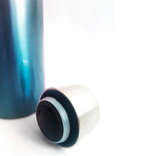 Garrafa térmica de 500m inox Gold Sports com boca estreita. Muito eficiente na conservação da temperatura de bebidas geladas ou quentes e também segura muito bem o gás de refrigerantes. A tampa, sem bem fechada, veda totalmente a garrafa, impedindo respingos e vazamentos.