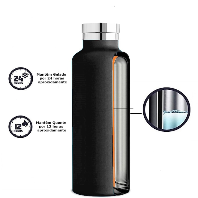 Garrafa térmica de 800m inox Gold Sports com boca estreita. Muito eficiente na conservação da temperatura de bebidas geladas ou quentes e também segura muito bem o gás de refrigerantes. A tampa, sem bem fechada, veda totalmente a garrafa, impedindo respingos e vazamentos.