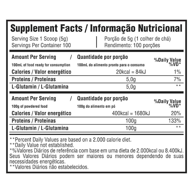 L-GLUTAMINA 100% BODYBUILDERS® é um suplemento para nutrição enteral ou oral, ideal para atletas que treinam pesado. É o aminoácido mais abundante de forma livre encontrado no tecido muscular. Desempenha um papel fundamental no metabolismo proteico, na construção de tecido muscular e no anti-catabolismo, além de auxiliar os sistemas imunológico e digestivo.