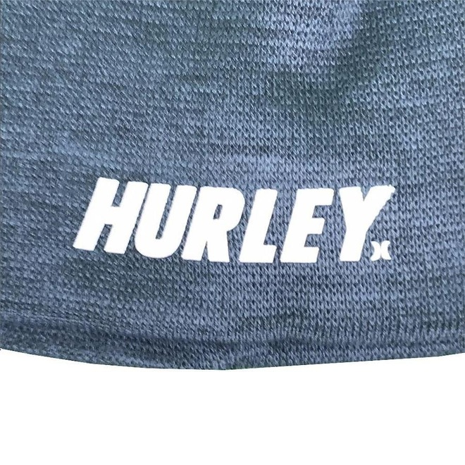Gorro Hurley em modelagem regular, tecido macio para aumentar o conforto durante o uso, estampa na barra em alto relevo e etiqueta personalizada.