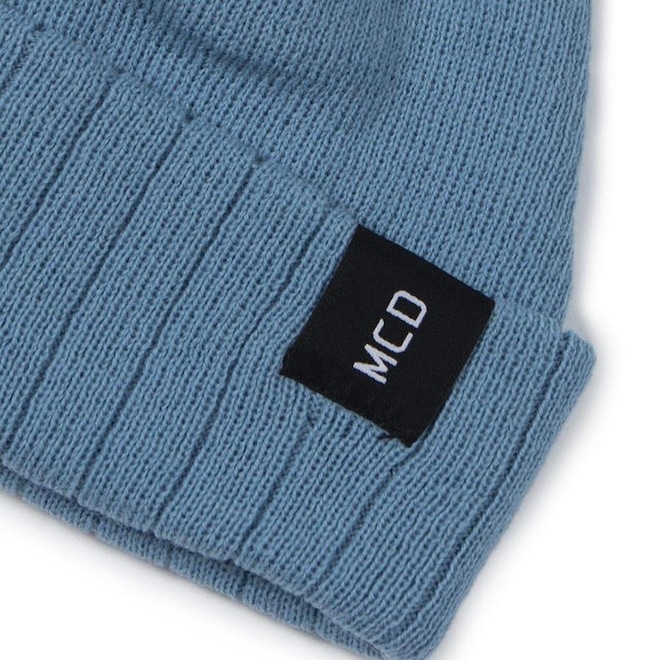Gorro MCD feito em acrílico, com logo na dobra e etiquetas personalizadas.