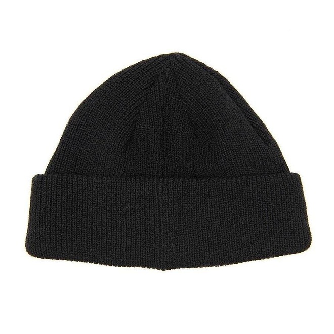 Gorro com tecído em acrílico, molde raso com dobra e etiqueta personalizada Quiksilver na parte frontal.