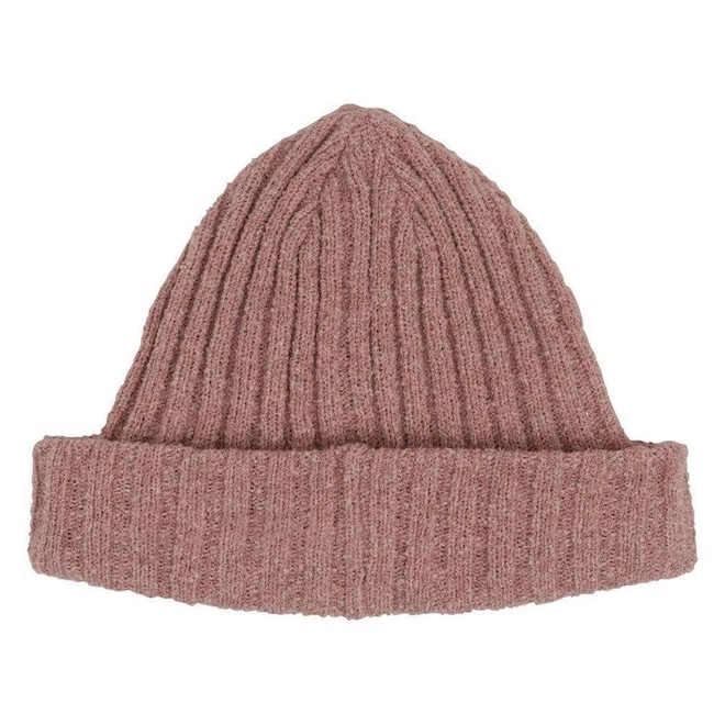 Gorro Roxy construído com tecido tricot, modelagem regular e dobra com silk de couro, detalhes de linhas na vertical e etiqueta personalizada.