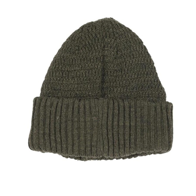 Gorro RVCA em tecido acrílico texturizado e canelado com dobra, bordado frontal centralizado e etiquetas personalizadas.