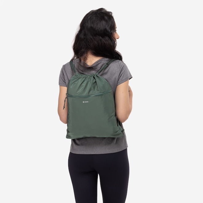 Feito com material resistente e fechamento por cordão, mantém seus itens protegidos e fáceis de acessar.
