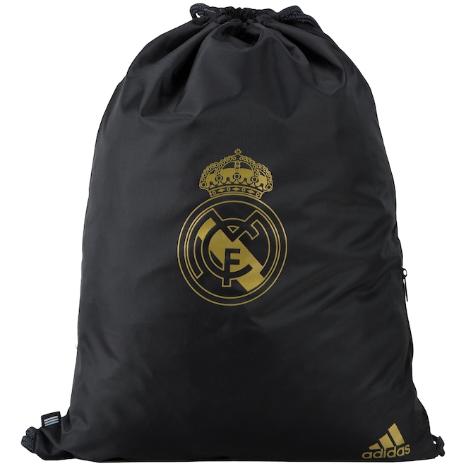 Prático e funcional, o Gym Sack Real Madrid é perfeito para carregar os pertences esportivos nos dias de treinos e mostrar a paixão pelo clube espanhol em todos os momentos. Seu compartimento principal é espaçoso com cordões bilaterais que permitem um fechamento rápido e seguro. Já a estampa é personalizada no tom dourado e sobressai no predomínio da cor preto com o escudo do Real Madrid e as três listras originais que conferem o padrão adidas de qualidade em todos os detalhes.