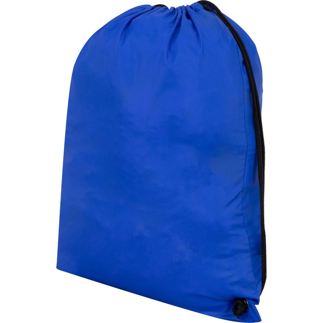 A gym sack conta com compartimento principal amplo e alças com cordões bilaterais e manual.