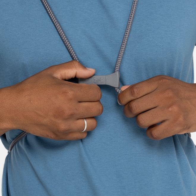 E o icônico logo que confere seu estilo esportivo e o padrão de qualidade Under Armour em cada detalhe.