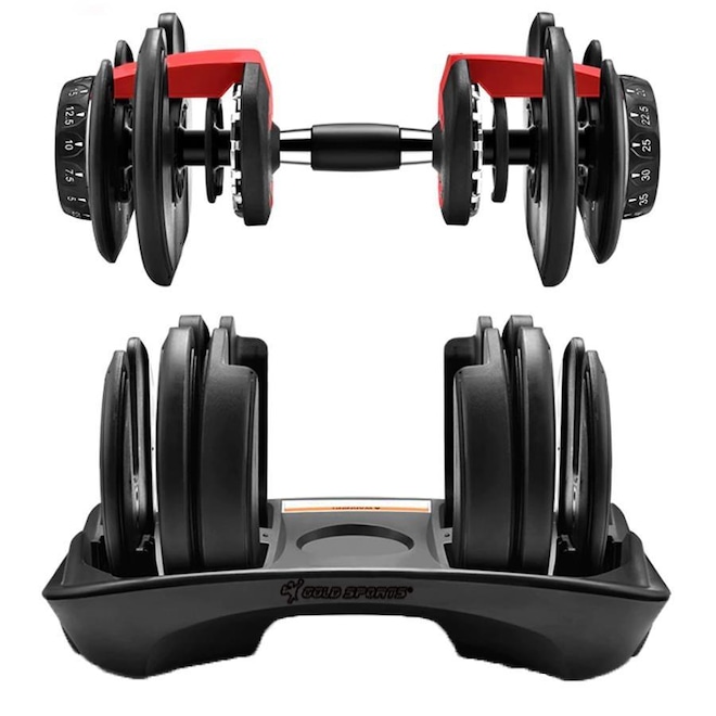 O Halter Smart Gold Sports Dumbbell Ajustável Até 24kg - Multinível permite ao usuario fazer terinos de diversos grupamentos e aumentando e diminuindo o peso com um só produto