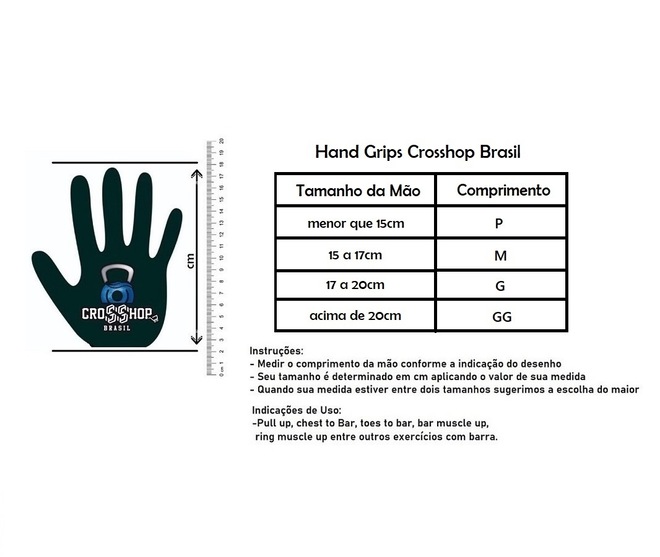 Os Hands Grips da Crosshop Brasil são o ponto chave para melhorar seu desempenho proporcionando excelência na sua performance.Tamanhos ( Medir a Palma da Mão)