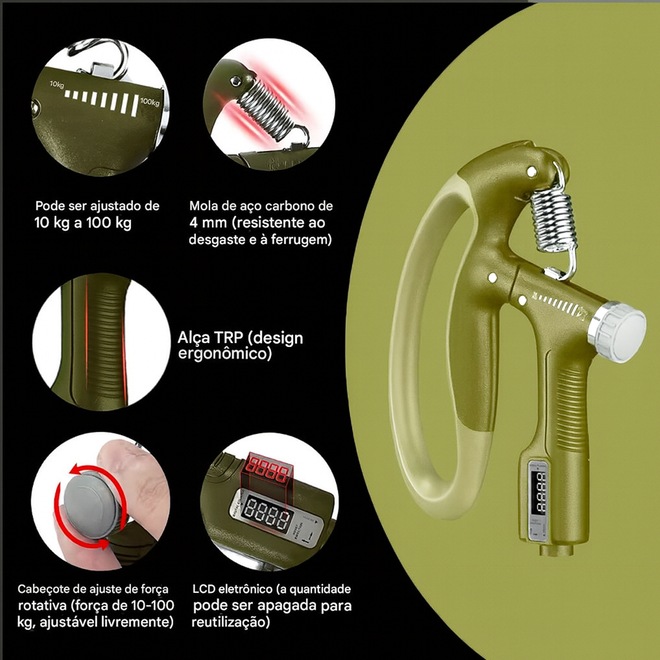 6. Hand Grip Gold Sports Phoenix Carga 10/120 kgs - Mola Aço Carbono Contador - Foto 6