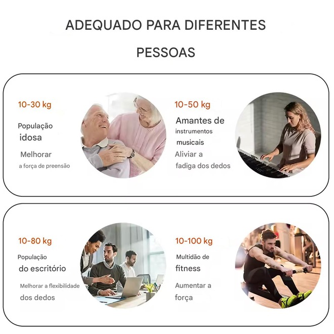 Seu design resistente ao desgaste significa que ele pode lidar até com os treinos mais intensos.Projetado para caber em todos os dedos, este fortalecedor permite que você entenda melhor o progresso e os resultados do treinamento.