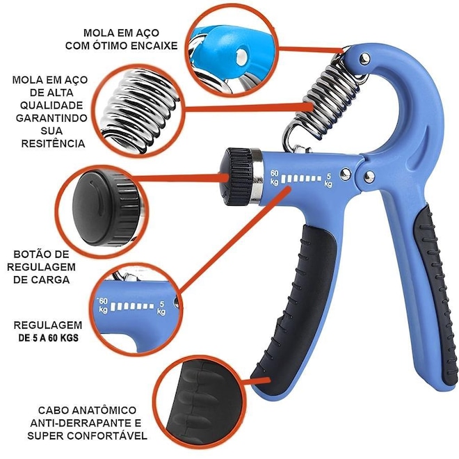 O seu exercício é muito simples, basta apertar de forma contínua para sentir o esforço dos dedos. Ajuste de tensão da mola de 5 a 60 kgs.
