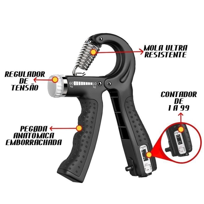 A regulagem/ajuste de peso ajuda ai diferente objetivo,por exemplo, deixar mãos mais fortes e tonificadas,melhorar a circulação ou prevenção de doenças.- Agora com contador - Composição: Aço, abs, pvc e polipropileno - ref: M0RD3E
