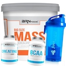 Composição do Kit: 1x Hipercalórico Big Size Mass - Balde de 6kg 1x BCAA - Pote de 100g 1x Creatina - Pote de 100g 1x Coqueteleira - Fuel Shaker 600ml