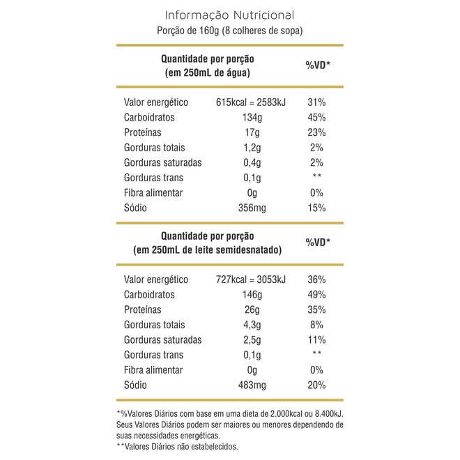 Este hipercalórico foi desenvolvido com os melhores carboidratos de rápida absorção em conjunto com as proteínas do soro do leite e da soja, fornecendo a cada dose se consumido com leite semidesnatado 727kcal e 26g de proteínas..