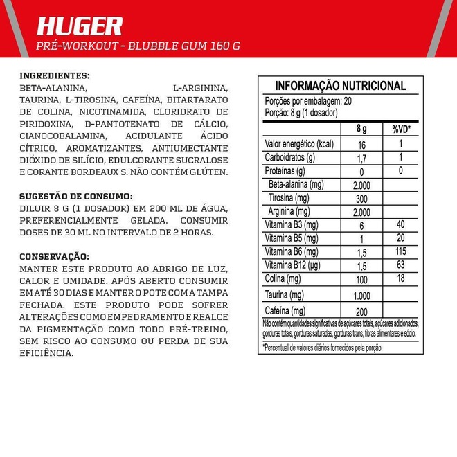TIROSINA: Precursora de dopamina que é uma das substâncias responsáveis pelo bem-estar e de foco mental, sensações importantes para o momento pré-treino.