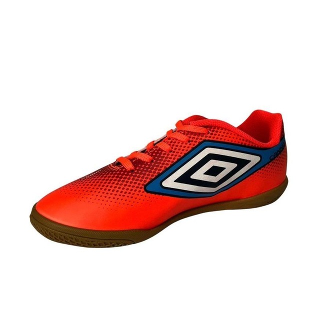 A Chuteira Futsal Infantil Umbro Cannon JR Coral foi desenvolvida para os jovens atletas que buscam aprimorar suas jogadas nas partidas de futsal. Com cabedal em sintético, o calçado traz design na cor coral, além de contar com solado em borracha antiderrapante. Não deixa marcas e proporciona excelente tração. Detalhes: Tipo de trava: Sem travaMaterial: SintéticoMaterial interno: TêxtilPalmilha: EVAFechamento: CadarçoSolado: BorrachaDiferencial: Ponto de giro que assegura a rápida mudança de direção durante as jogadas.ref: M13FYX