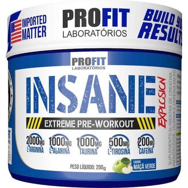 Pré Treino Insane Profit Explosion - Maçã - 200gINSANE EXPLOSION oferece uma pode combinação de ativos para que você treine com intensidade total, permitindo uma melhora da força, maior foco, concentração, resistência e vasodilatação que vão aumentar significativamente seu desempenho físico durante os exercícios.