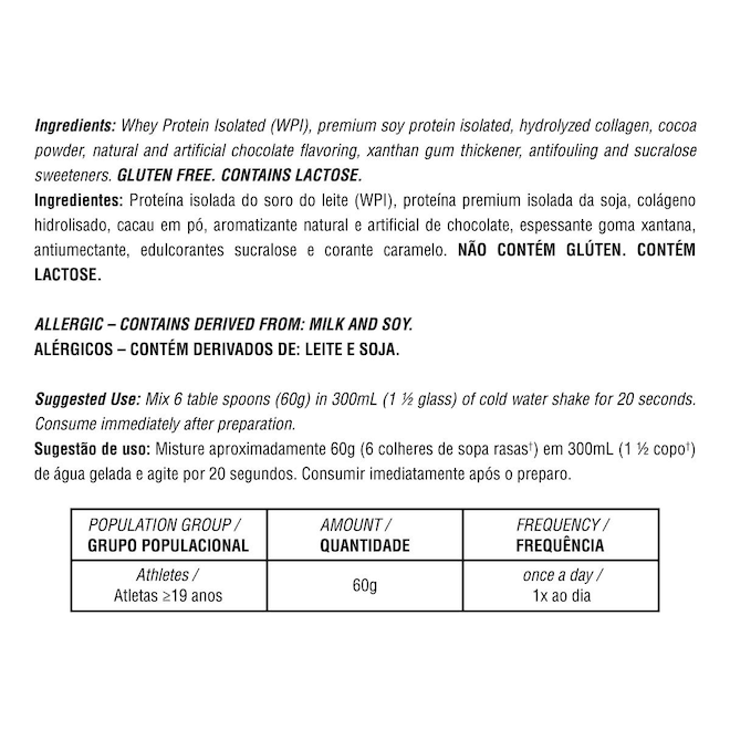 Glúten: Não Contém | Tipo: Proteína Isolada | Lactose: Não Contém