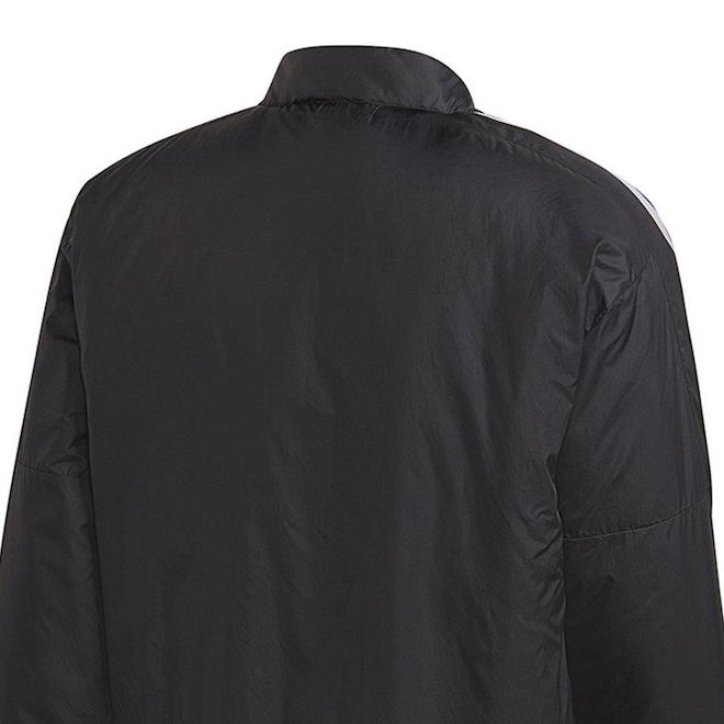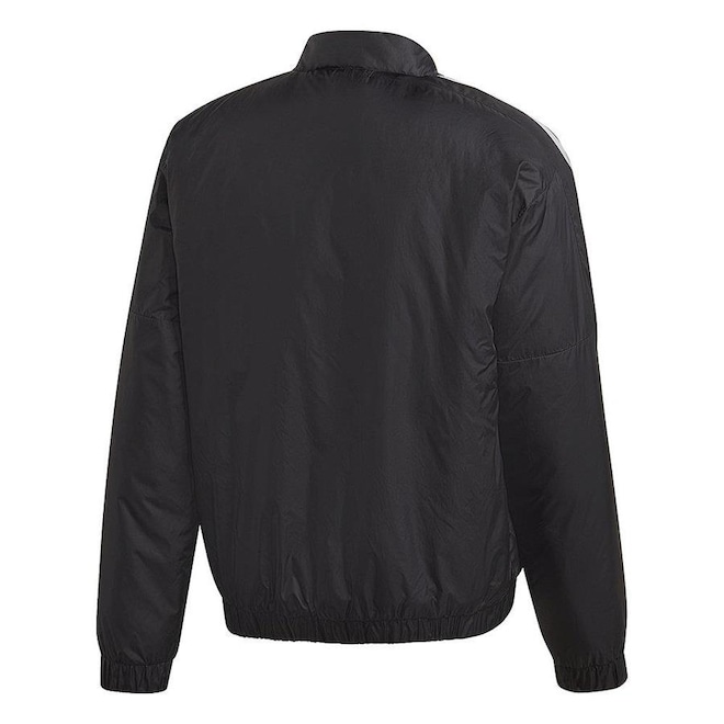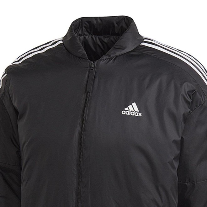 A Jaqueta adidas Bomber Essentials Masculina é confeccionada em 100% poliéster, trás o isolamento térmico com as três listras na lateral da peça.