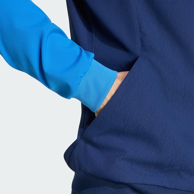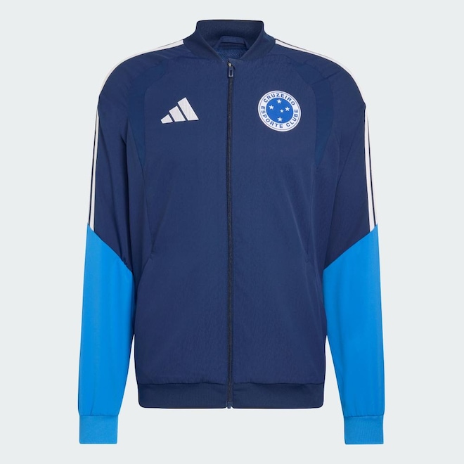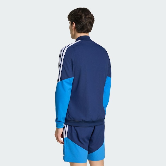 jaqueta Apresentação Competition Cruzeiro 26 mostra o orgulho do seu time em um design que leva a cultura do futebol para além do estádio, direto às ruas com energia renovada. A malha elástica leve cria uma camada confortável e versátil, enquanto o zíper completo facilita o uso em movimento. A modelagem justa acrescenta um toque contemporâneo. O brasão do clube costurado confere autenticidade ao visual, enquanto a fita de malha adidas Três Listras e a marca bordada proporcionam detalhes de herança com acabamento arrojado.