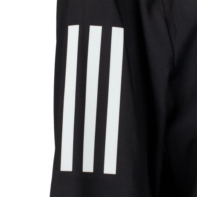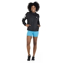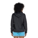 A jaqueta adidas feminina é de fechamento em zíper, com capuz ajustado por cordão.