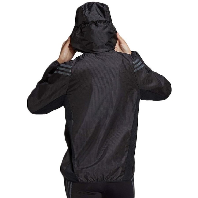Vista esta jaqueta corta-vento com capuz de corrida Run Icons 3-Stripes, a opção ideal para aquelas manhãs frias em que você prefere ficar na cama.