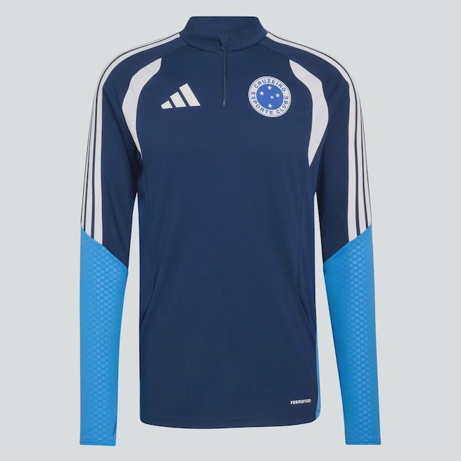 Tecnologias FORMOTION: Utiliza cortes tridimensionais e tecidos elásticos que se moldam ao corpo em movimento para proporcionar um ajuste perfeito e máxima liberdade atlética. Composição: 100% Poliéster Abertura/fechamento: Zíper frontal Bolsos: Não possui Cor predominante: Azul Indicado para: Treino Origem: Importado Escudo: Estampado Clube: Cruzeiro Manga: Longa Gola: Alta Ajuste: Manga com abertura para o polegar Dimensões aproximadas (A x L): P: 73 x 51 cm M: 75 x 53 cm G: 77 x 55 cm GG: 79 x 57 cm EG: 81 x 59 cm EEG: 83 x 61 cm