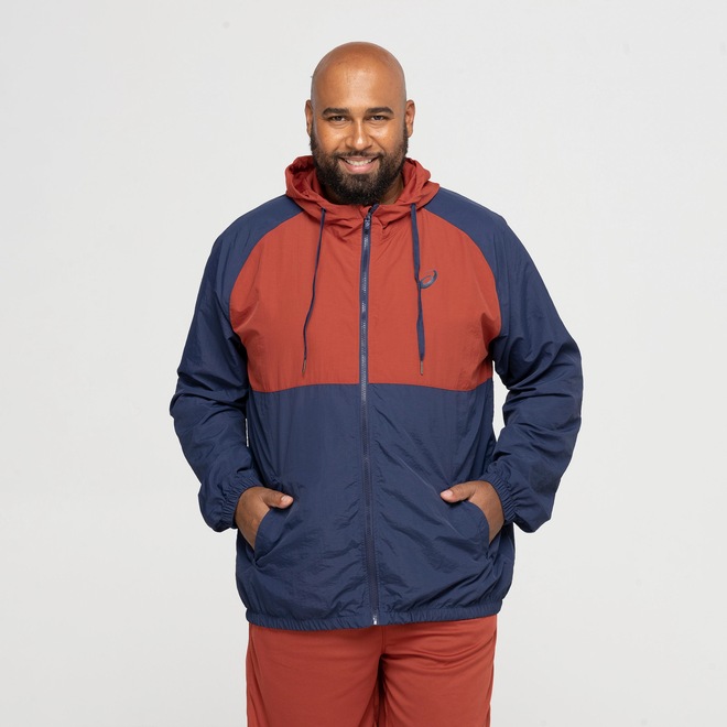 A jaqueta masculina possui fechamento em zíper, dois bolsos laterais para guardar os objetos perto das mãos e capuz com ajuste em cordão.